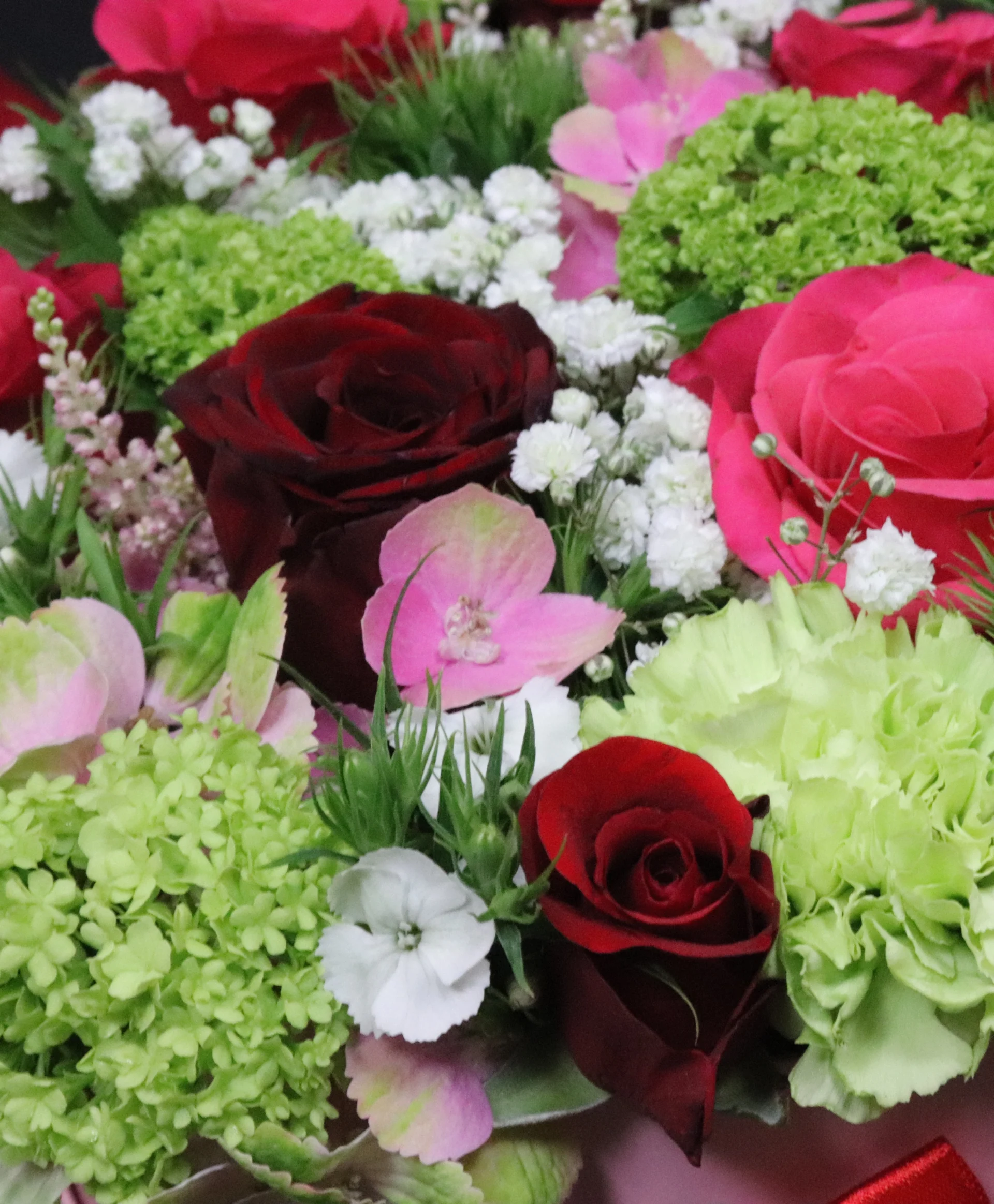 De bloemen zitten stevig vast in de oase en worden geleverd in een luxe, doorzichtige verpakking met bijpassend lint en een verzorgingskaartje. Zo is je cadeau niet alleen mooi, maar ook makkelijk in onderhoud.