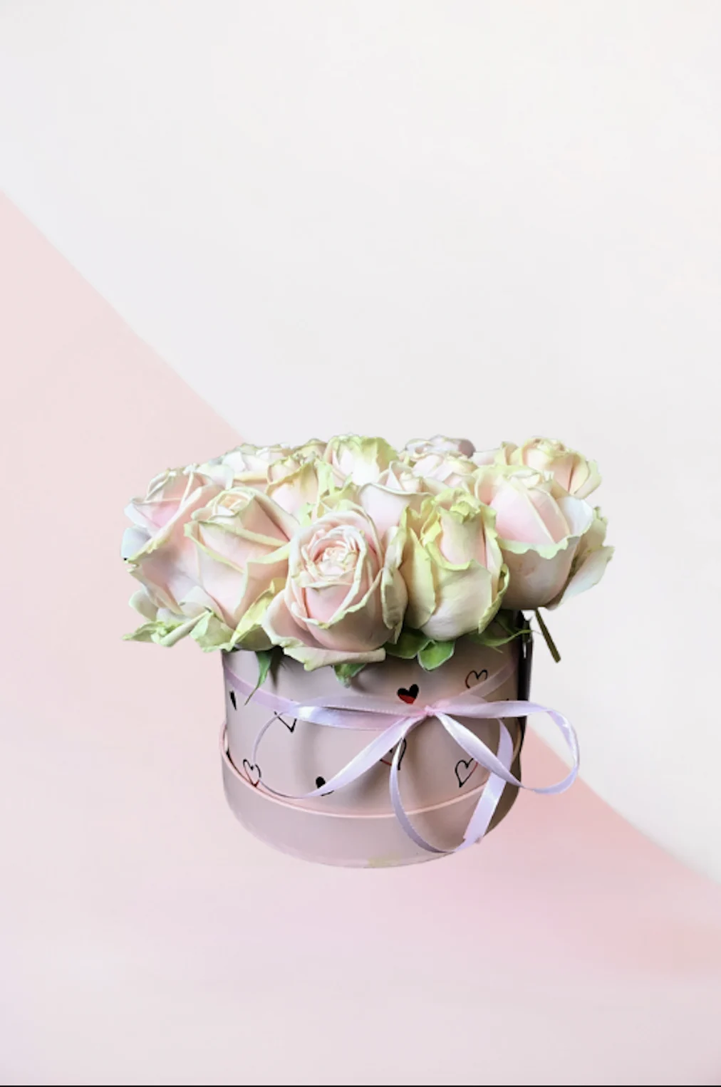 In deze schattige lichtroze box, versierd met rode hartjes, zitten zo’n 15 tot 20 verse rozen uit het seizoen. We halen ze dagelijks vers van de bloemenveiling, zodat je zeker weet dat de bloemen lang mooi blijven en volop stralen.