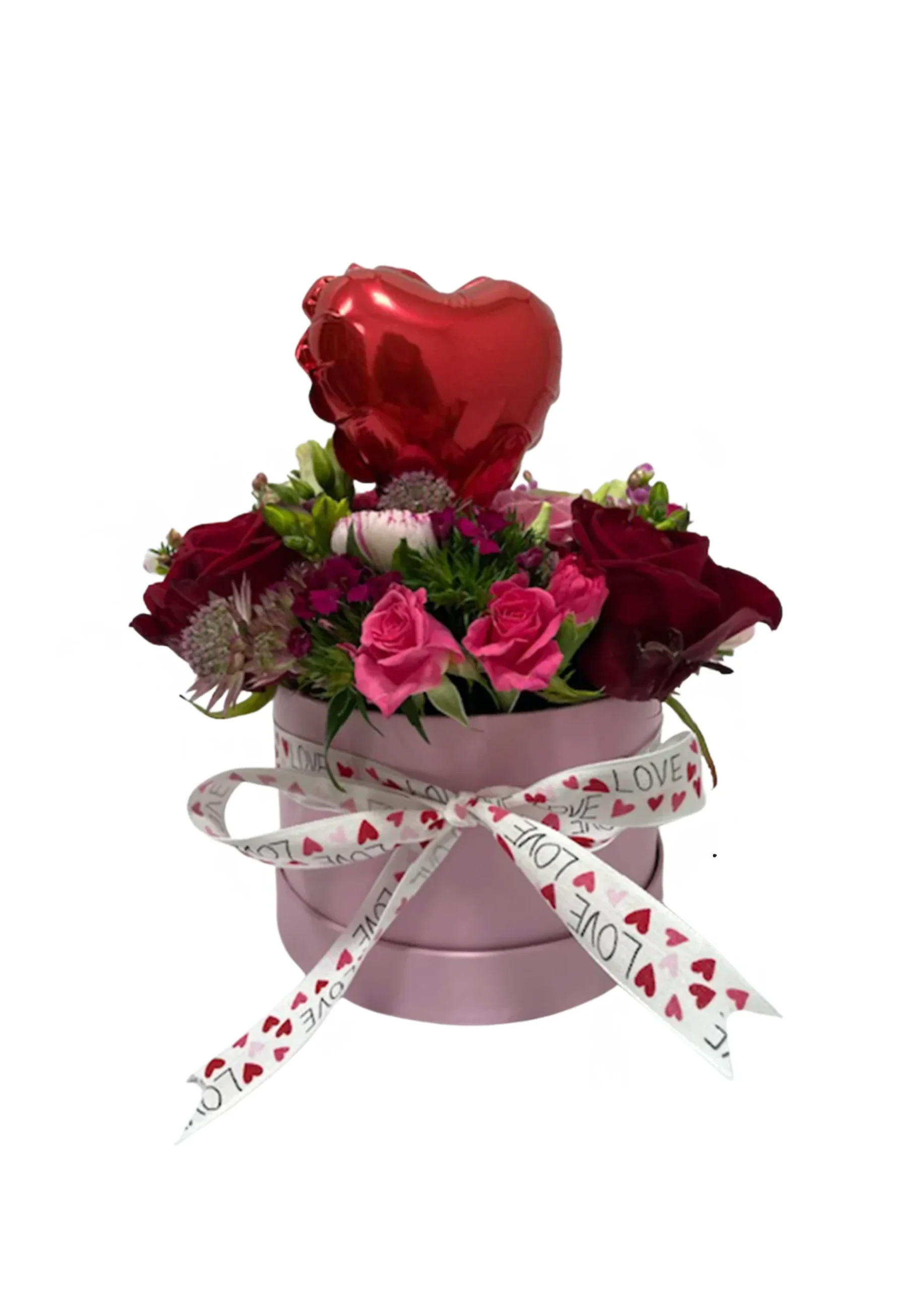 Dankzij de oase met bloemenvoeding blijven de bloemen lang mooi β en je hebt geen vaas nodig. De box is voorzien van een vrolijk liefdeslint en wordt feestelijk ingepakt. Er zit zelfs een verzorgingskaartje bij en je kunt, als je wilt, een persoonlijke boodschap toevoegen.