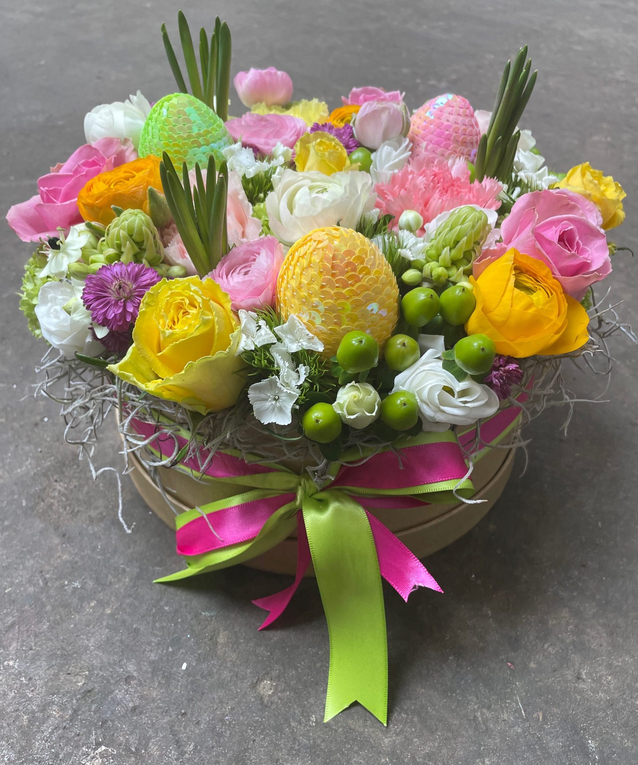 Deze paas flowerbox is een top cadeau! Een box met bloemen in verschillende kleuren om pasen te vieren. Geen vaas meer nodig!
