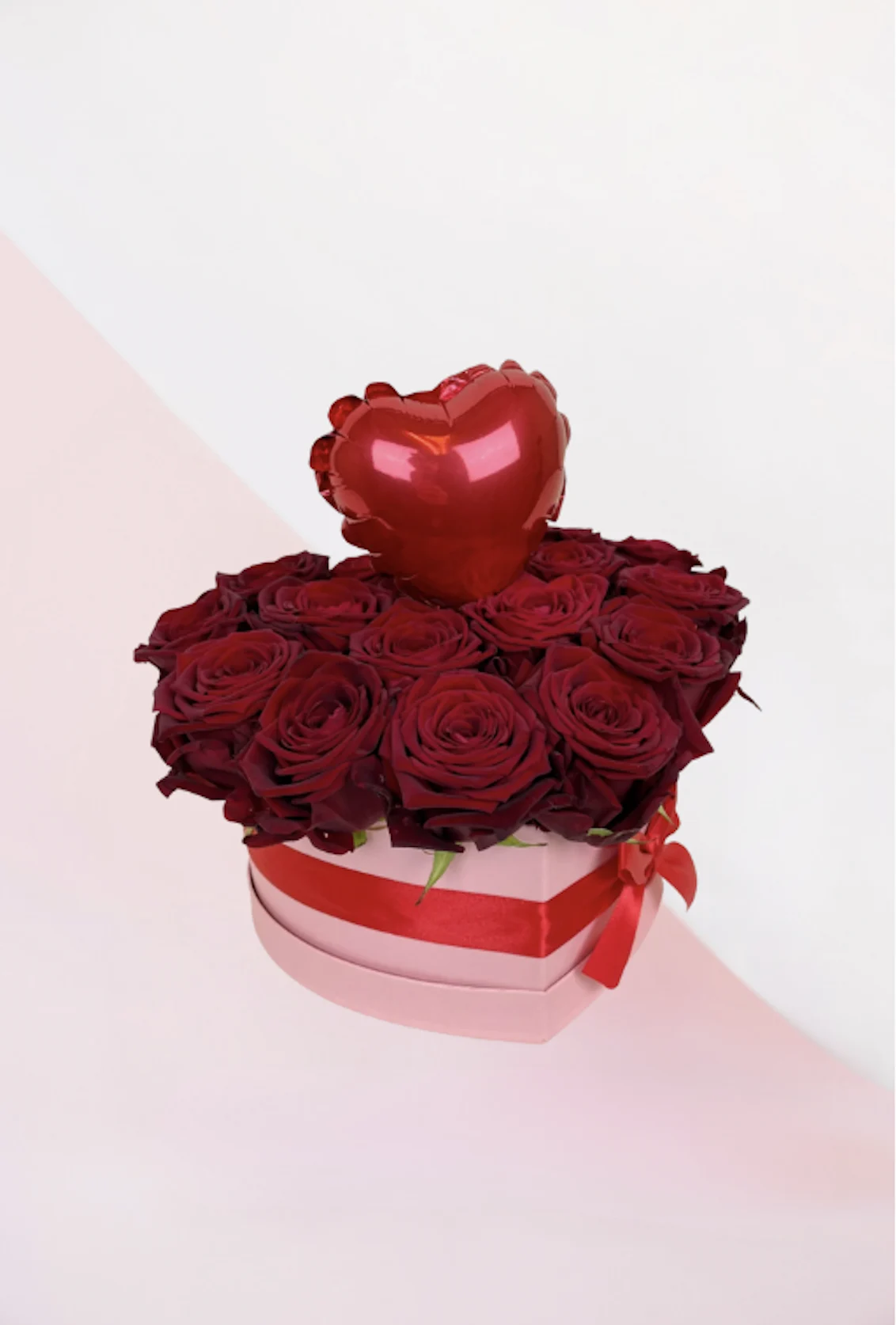 Liefde zit ‘m in de details – en dat zie je terug in deze romantische Flowerbox rozen hart met ballon. Dit kleinere hartje is gevuld met zo’n 15 à 20 prachtige rozen en een ballon in de vorm van… juist, een hartje.